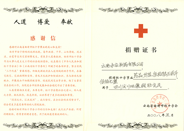 四川汶川地震捐贈(zèng)證書(shū)(2008年)